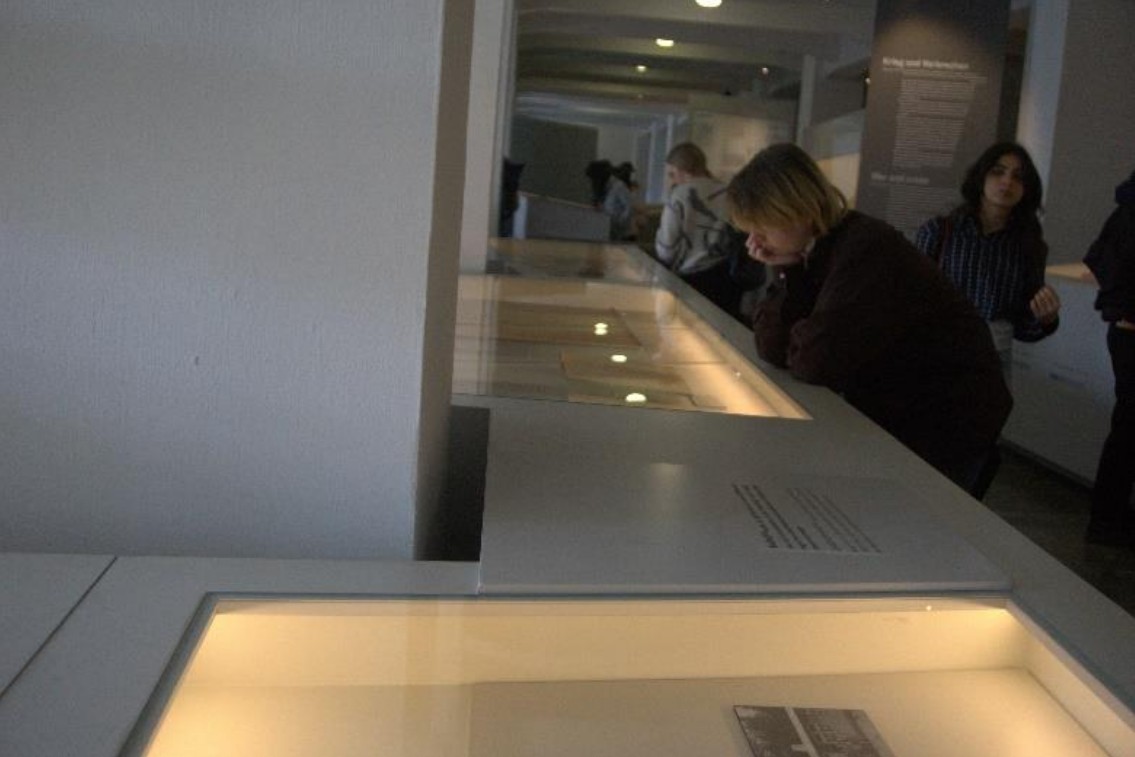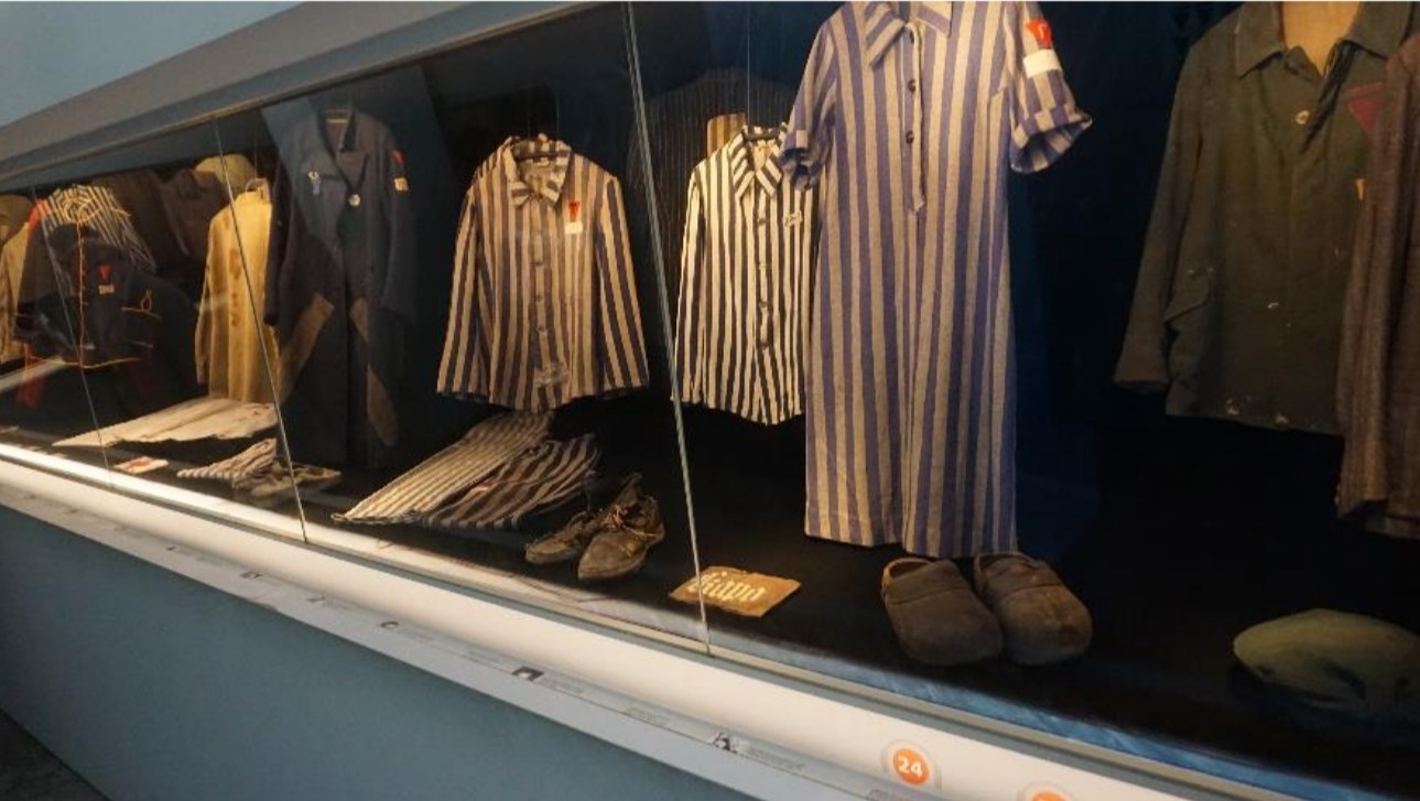 Nach der Führung waren wir sehr froh, dass wir uns zu warmen Getränken und leckerem Essen im Besucherzentrum aufwärmen konnten. Anschließend besuchten wir gemeinsam mit Herrn Janott das Museum des Lagers. Dieses hatte zahlreiche Erinnerungsstücke an die Zeit ab 1937, den Bau des Lagers, bis 1945 ausgestellt. Besonders interessant war dabei, dass so viele der Schriftstücke und originale Gegenstände, noch gut erhalten, ausgestellt waren. Auch das Alter der Häftlinge, 2-86 Jahre aus über 50 verschiedenen Ländern war besonders eindrucksvoll. Vieles war sehr bedrückend.