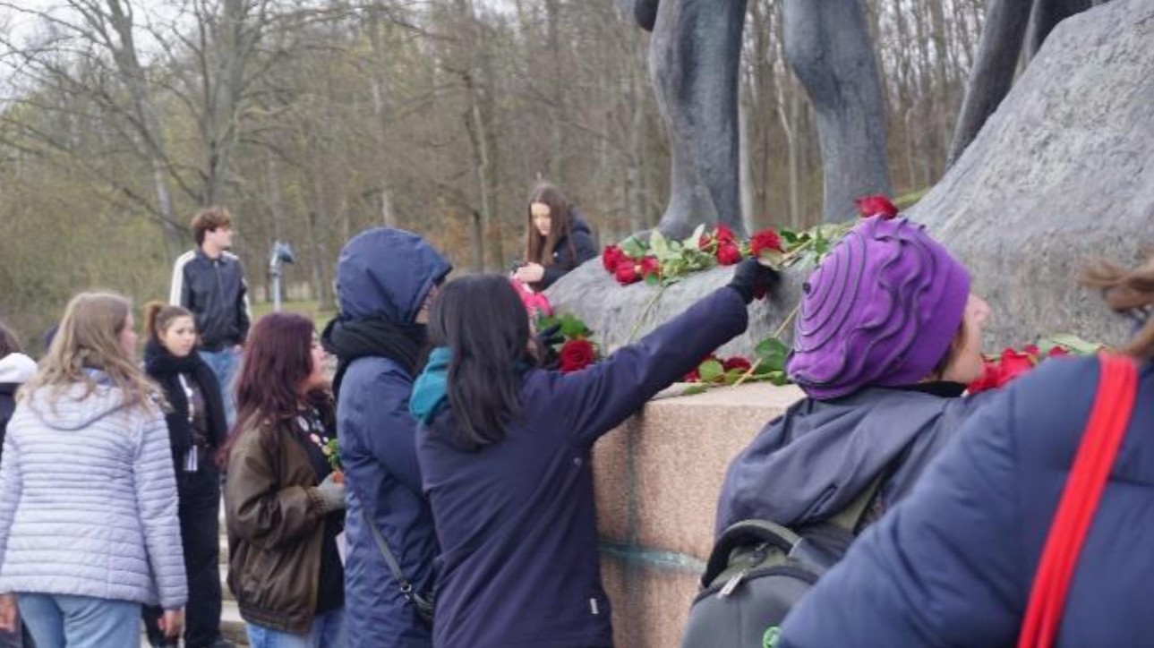 An der Straße der Nationen gab es vor dem deutschen Gedenkstein ein Erinnern an einige Persönlichkeiten, die in Buchenwald inhaftiert waren. Anschließend nahmen wir an der gemeinsamen Kundgebung der Jugend am Glockenturm teil. Bei dieser wurden auch Blumen und Kränze am Mahnmal niedergelegt. Diese Kundgebung bildete den emotionalen Höhepunkt des Treffens - ein Zeichen der Erinnerung und des Zusammenhalts über nationale Grenzen hinweg.